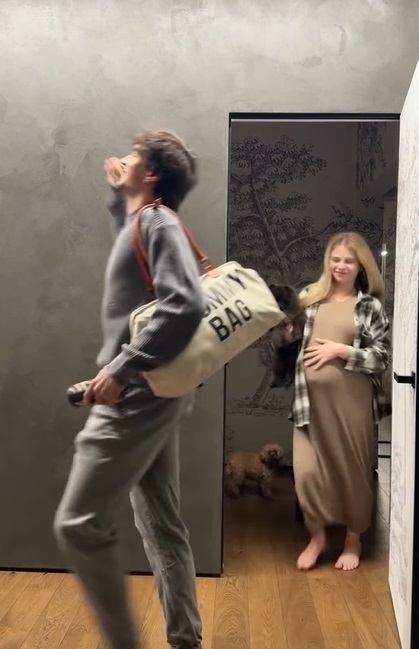 Так же в день родов Саша и Макар опубликовали забавное видео, в котором уходят с сумкой на плече и с собаками в роддом, с подписью: "Если вы видите это видео - мы в роддоме 😉🤘