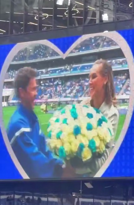 Актер во время перерыва, пригласил девушку на поле, держа её за руку произнес: