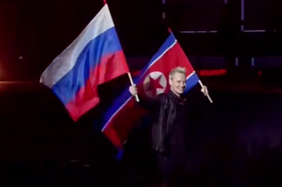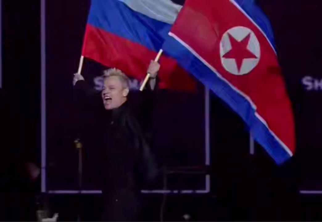 Особенно ярким и важным моментом стало появление SHAMANа на сцене с государственными флагами России и КНДР в руках. На вступлении песни "Народ" артист энергично размахивал ими.