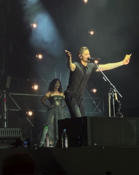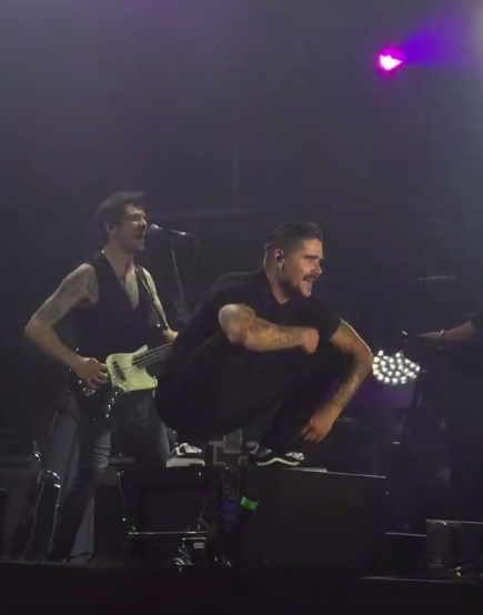 Музыкант не остался в стороне и без колебаний он спрыгнул в зрительный зал, чтобы лично забрать заветный конверт, в котором скрывалась информация о том, кто появится на свет — мальчик или девочка. А так же попросил тот самый плакат, который ребята поднимали над головой.