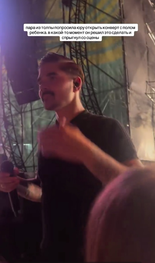 Во время выступления пара из многотысячного зала зрителей обратилась к фронтмену группы Юре Музыченко с неожиданной, но очень личной просьбой — определить пол её будущего ребёнка.